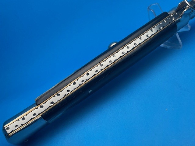 Here we have a Sweet….15″ AGA Campolin 2015 Brazilian Horn Bayonet Pull Ring Picklock That has been customized By Tank Fisher @ TBARK Customs. It has Coined Brass Liners … Stamped with the TBARK Logo. The Ringpulls are extremely hard to find. We hate to part with it..because it was a Tank knife…but it’s time for it to find a new home. Only One Available !! So … Strike while the Iron Is Hot !!!