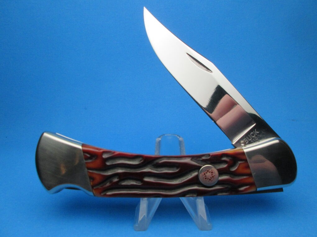 Custom Buck 110 with Brown Jigged Bone Handles & Mosaic Button. 110 Automatic Switchblade Knife This is Fully automatic, Polished Nickel Silver Bolsters, Button,& Polished Stainless Blade. Very Sweet… Best Conversion Ever & Done here in the USA. ONLY TWO!!! Absolutely Gorgeous…Brand New with Box & Sheath Included !!