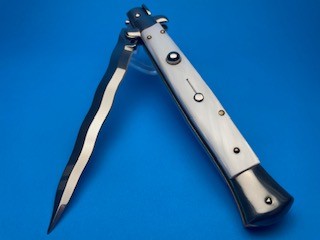 Frank Beltrame 11″ Imit. Mother of Pearl with Kriss Blade Switchblade Always a crowd Favorite !