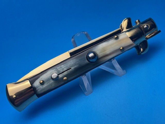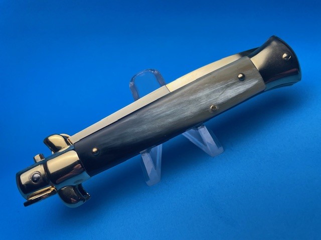 Frank Beltrame 9" Brazilian Horn Gold Bayonet Switchblade quantity