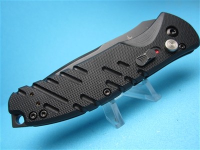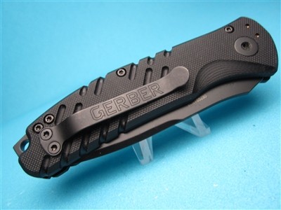 THE GERBER PROPEL TANTO POINT SERRATED SWITCHBLADE KNIFE A HUGE FAVORITE OF LAW ENFORCEMENT & MILITARY Gerber Propel Auto The Propel Auto is a sleeker, faster addition to Gerber’s line of automatic knives. The Propel Auto features a slender Black G-10 body and multi-position pocket clip, allowing the operator to carry the Propel Auto however they see fit. The tanto style 420HC steel blade is black oxide coated for corrosion resistance and minimizing reflective surfaces. Made in the USA. 8 1/2″ ov, 3 1/2″ bl, 5” cl.