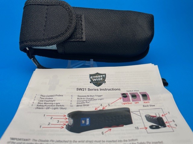 Two Safety Features: In order to prevent the stun gun from accidentally going off and to keep your curious “little ones” safe, the pin can be kept in a separate compartment inside your purse when storing the stun gun. The stun gun will not work until the disable pin is inserted into the bottom of the unit and the safety is turned off. For additional protection, if the pin is inserted and the safety is turned off an alarm sounds.