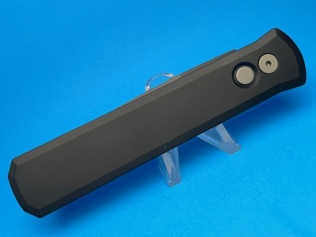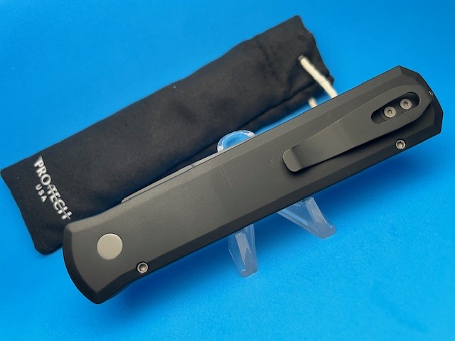 The ProTech 921 Godfather is the flagship knife of the ProTech product line. The 4″ spear point type blade is 154CM steel with a tactical finish, and a plain edge. The handle is solid black anodized T6-6061 aircraft grade aluminum with satin finished hardware, firing button, and a stainless steel tip-up carry pocket clip. The 921 Tactical Godfather is an American innovation of the automatic Stiletto featuring modern materials, high tech manufacturing, advanced coil spring mechanism, and quality American production. Since it’s introduction in 2001, ProTech’s Godfather auto knife has been an icon in US produced automatic knives……A perfect knife for EDC and tactical carry.