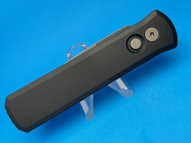 Pro-Tech Knives is proud to be the first choice of Police and Military professionals around the world. Pro-Tech Knives are built to serve and serve well. This is the highly anticipated 3.15″ blade version of the popular Godfather AUTO knife. Italian Inspiration and American Innovation have created another superior coil spring action auto knife. Like the original 4″ blade Godfather, the Godson is available in a wide variety of styles and materials. This model features a black DLC-washed 154CM stainless steel blade with black aluminum handles.
